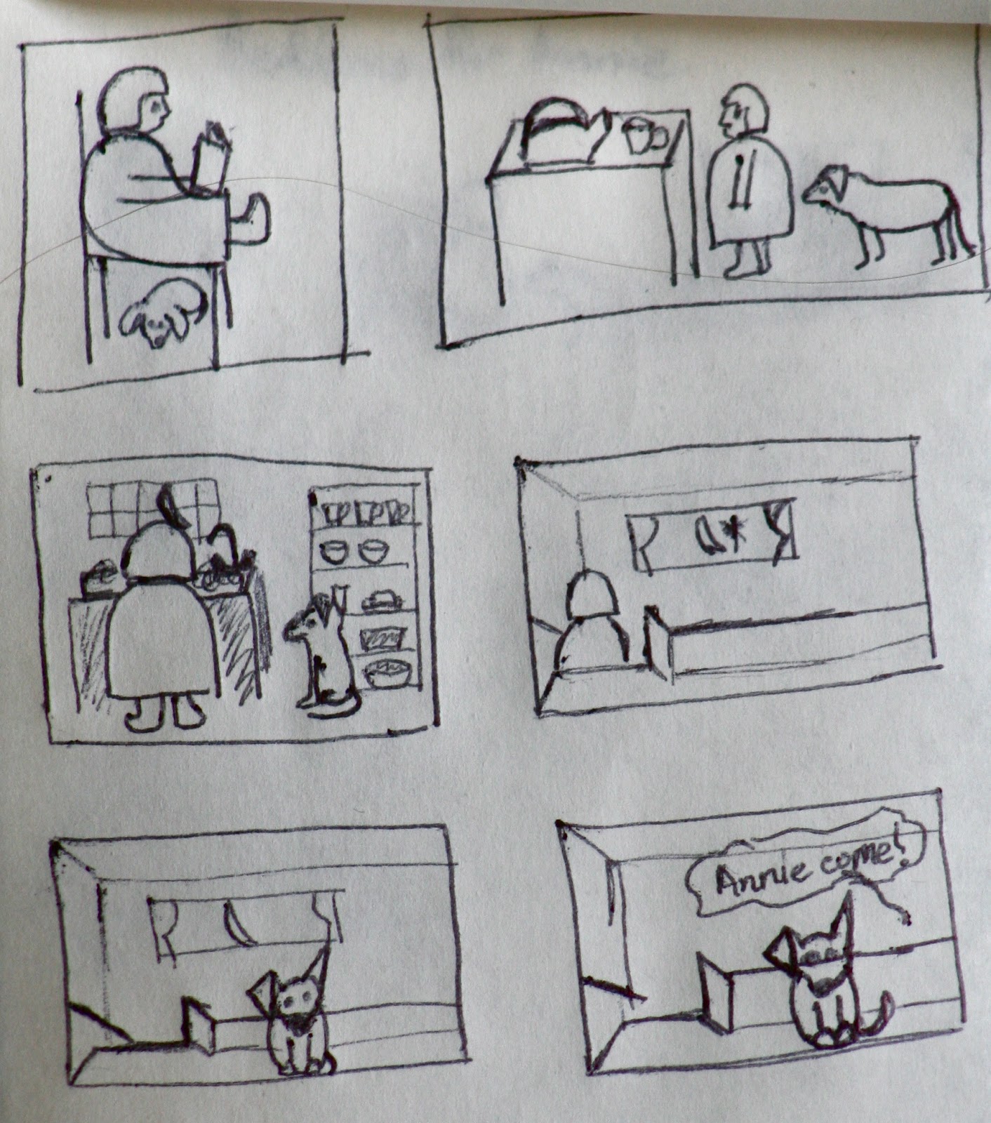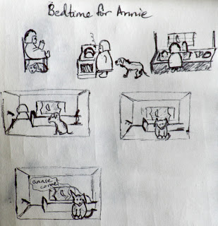 1. I often feel bad that pets, especially dogs, have nothing going on all day and they just want to hang out with us but we're so busy. The lady in this comic for example is always occupied, and there's Annie, just waiting until she's done. In the penultimate panel I feel so sorry for the dawgie, going to bed, noone has remembered her. But then! OH BOY, I feel the excitement surging through the doggie veins, \”That's me!\” Annie Come!