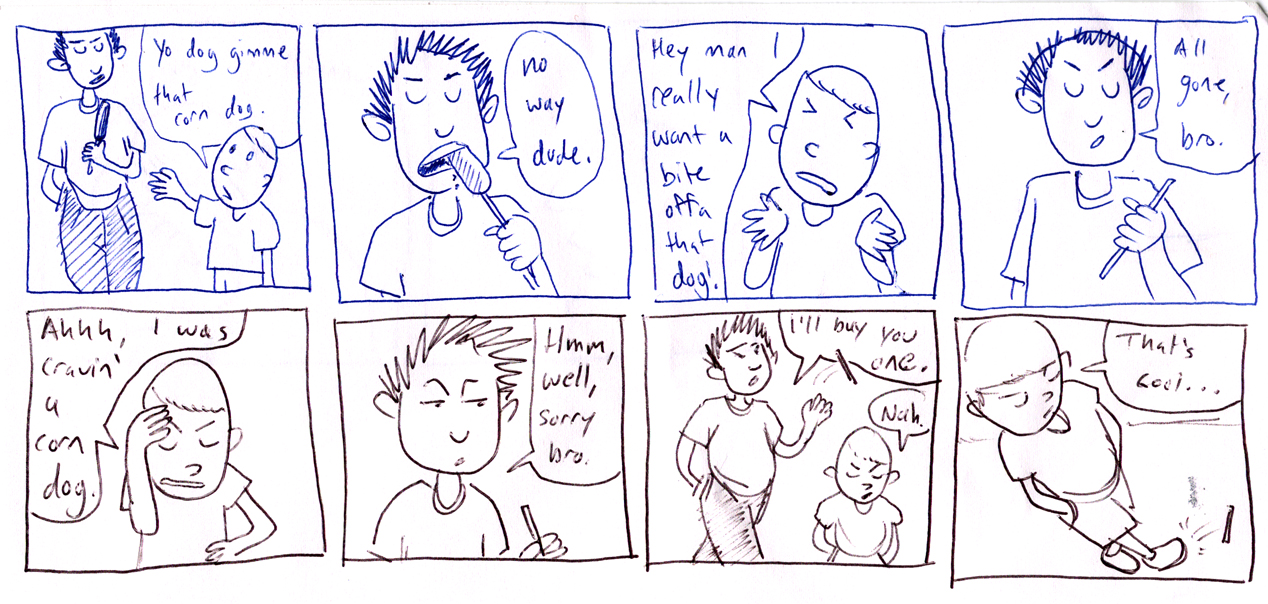Sunday Comics #12 (Tom) Posted bythomasokeefeJune 25, 2012Posted inUncategorizedTags:bros, corndog, sunday comic Seriously, episode 2 of Space Detective Lydia COMING SOON….In the meantime inbetweentime here’s comic I wrote ’bout a corndog.Enjoy! Share this: Click to share on X (Opens in new window) X Click to share on Facebook (Opens in new window) Facebook Like Loading... Related
