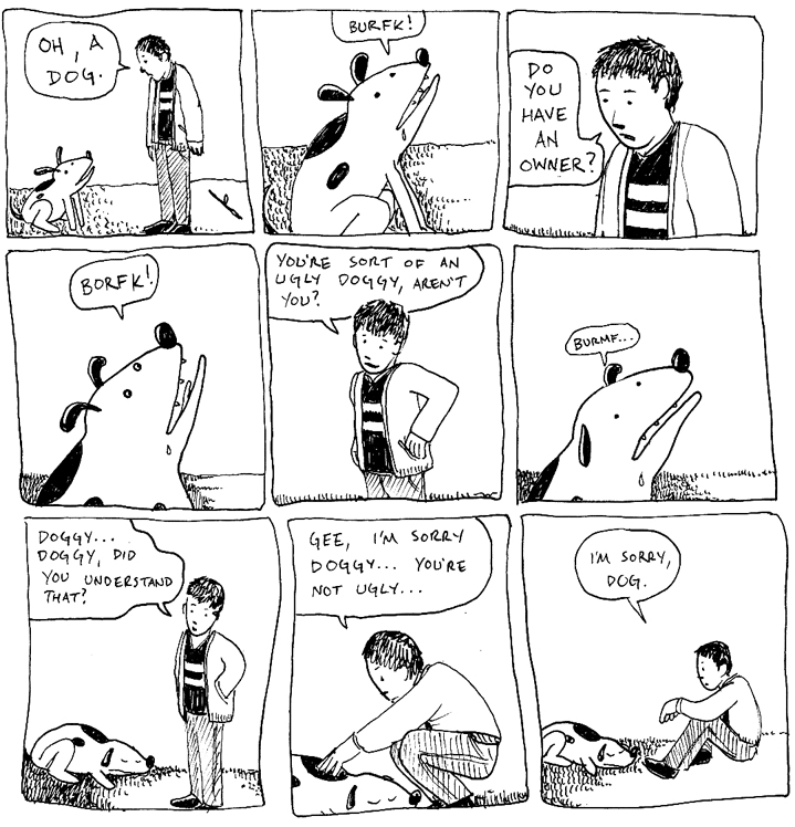 Sunday Comics #14 (Tom) Posted bythomasokeefeJuly 8, 2012Posted inUncategorizedTags:dog, man, sunday comics, Tom Here’s a little comic called, “Tragedy in the Park With a Man and a Dog (The Profound Sadness of Earth) – A Cautionary Tale and Moral Fable Share this: Click to share on X (Opens in new window) X Click to share on Facebook (Opens in new window) Facebook Like Loading... Related