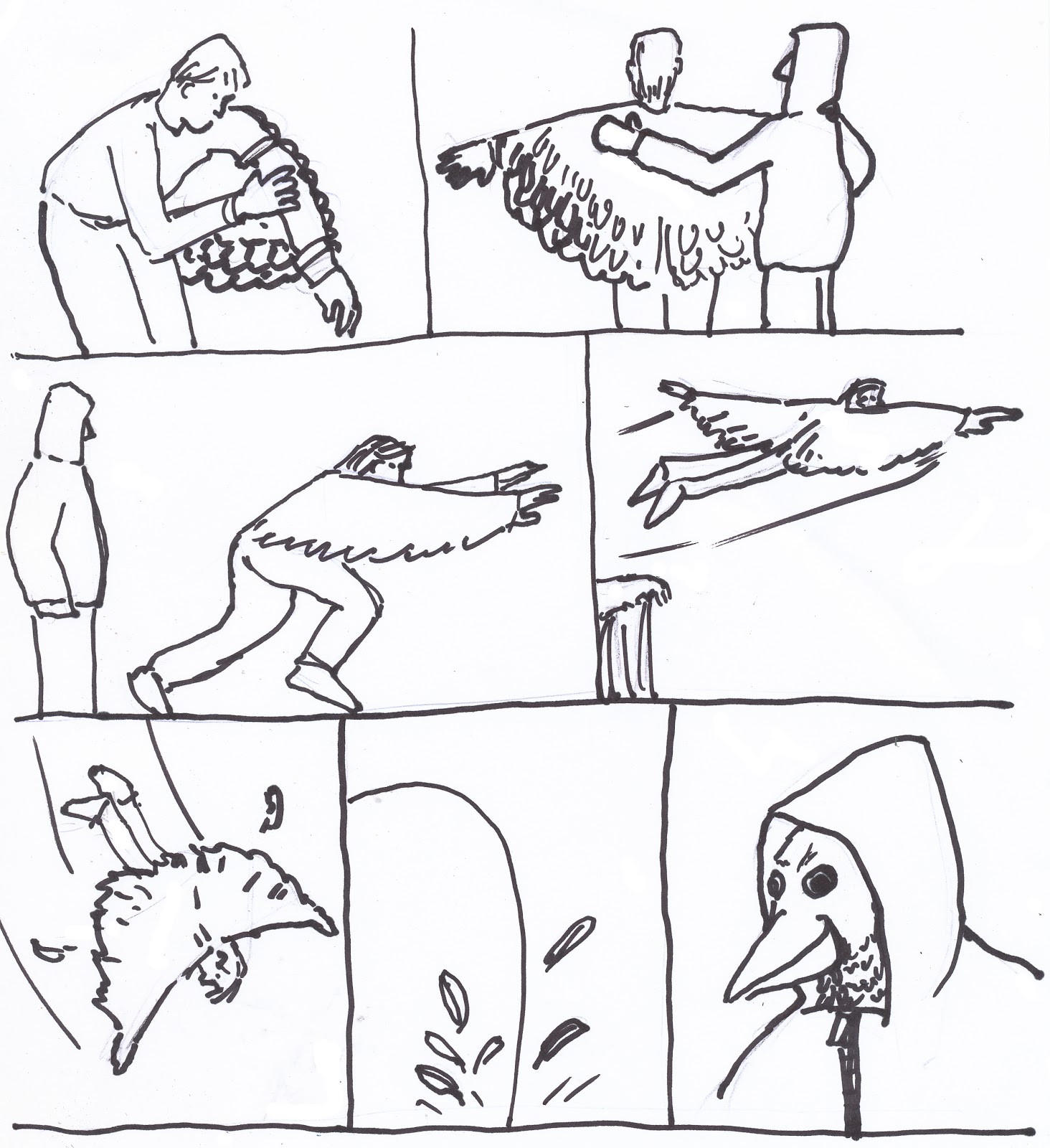 It's the like the evil version of that other story you did with that cliff-jumping wing dude.SImple, but creepy. I like it.