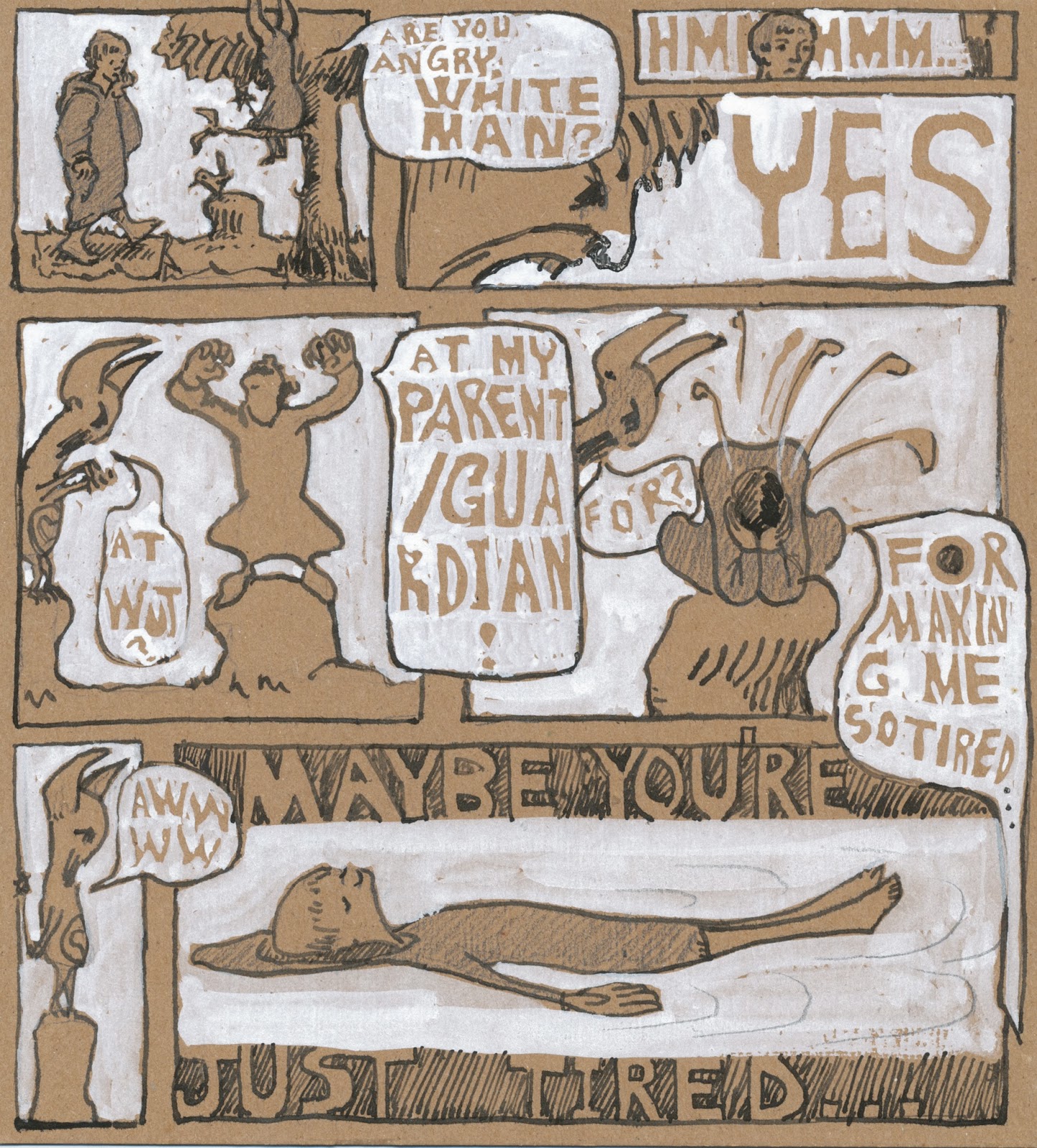 Lovey Dovey seems less malevolent here. \”At my parent/ guardian\” is a highlight. Keep on chuggin, papa clog. No shame!