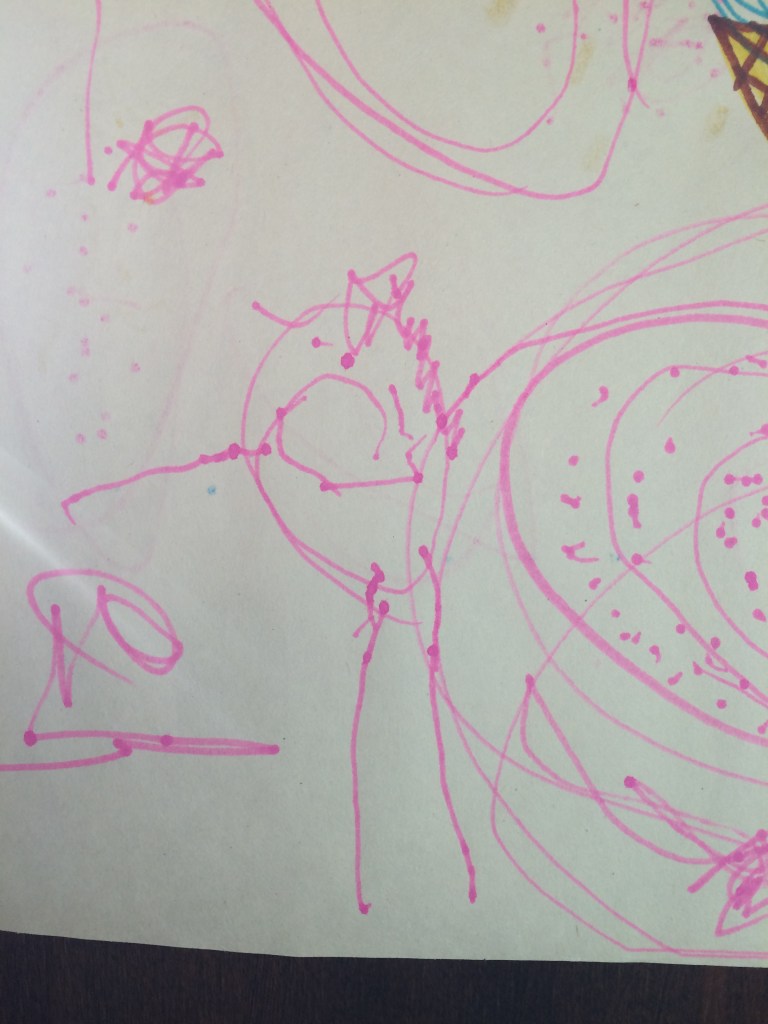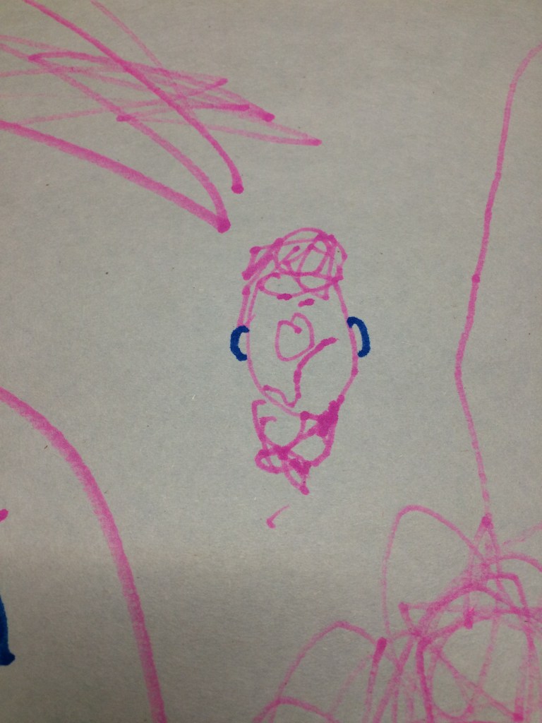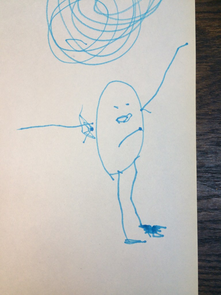 Cyrus has had some breakthroughs with drawing lately. The attached images are all exceptions from the rule. His preferred mode is abstract expressionism mixed with a constant nearly-nonsense monologue. But he has generated these beings complete with eyes and arms and all.