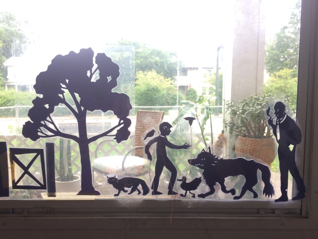 For this Sunday I’m sharing the shadow puppets I made of Peter and the Wolf for Cyrus. We’ve been listening to a lot of Peter and the Wolf and I’ve been dreaming of making more shadow puppets, and we’re all cooped up and need things to do and so: this project.